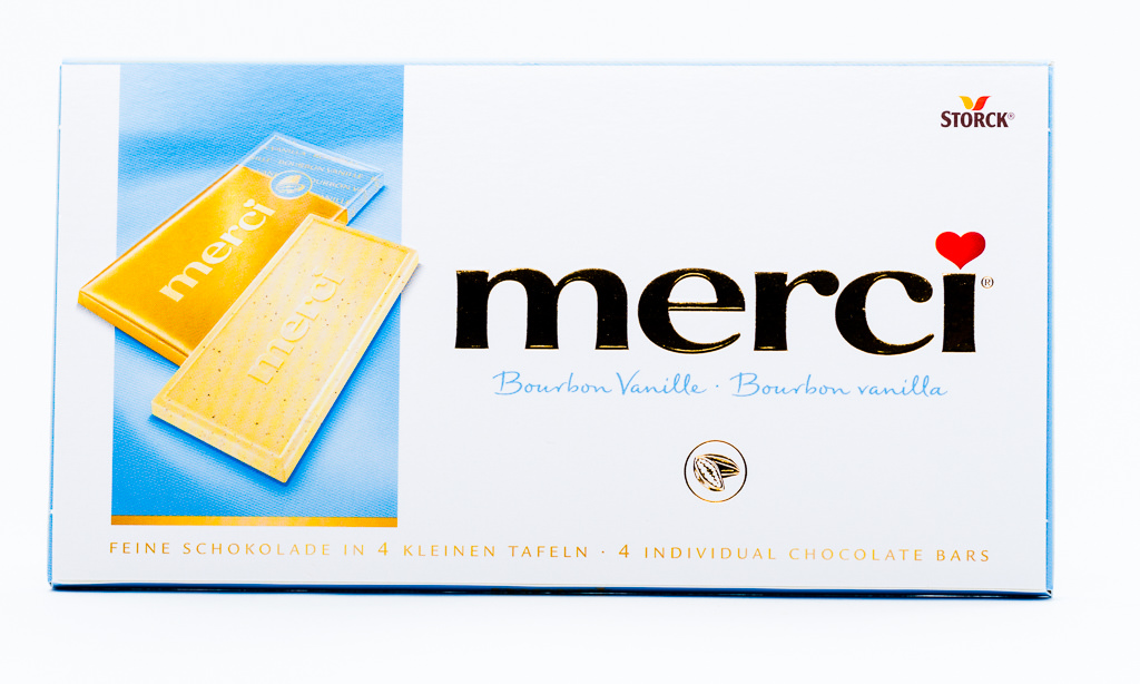 Merci chocolates by the German candy company Storck are always a very extraordinary treat in your Candy German subscription box. Not only that they are mouth-watering – they are also always very nice in appearance with a focus on high quality packaging. If you like vanilla, you will love the merci bourbon vanilla bar. There are four individually wrapped small bars in your package. The white chocolate is phenomenal – so tender, so creamy, so tasteful! There is real bourbon vanilla in the chocolate and not only vanilla aroma. You can see this because of the tiny black spots and of course you can taste it. The vanilla taste in combination with the white chocolate is just perfect. Enjoy it!